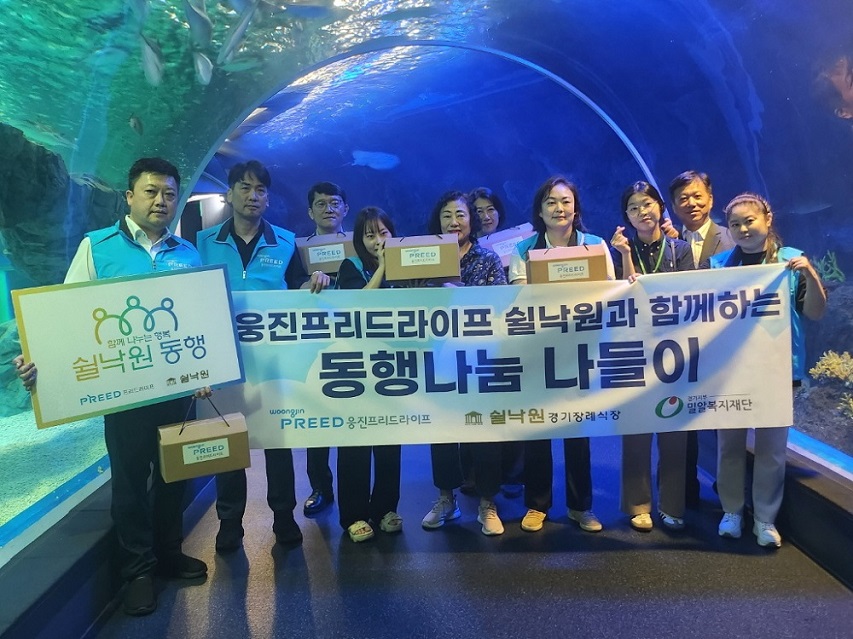 웅진프리드라이프는 올해부터임직원 참여형 사회공헌 프로젝트 ‘쉴낙원의 동행’을 진행하고 있습니다. 본사 각 본부와 전국 15개 쉴낙원 장례식장이 1:1 매칭되어 지역사회의 특성과 필요에 맞춘 맞춤형 봉사와 나눔을 이어가고 있습니다. 이번 아쿠아플라넷 나들이는 밀알복지재단 경기지부와 함께한 올해 네 번째 활동으로, 이전에는 김장 나눔, 봄맞이 선물키트 제작, 어르신 배식 봉사 등 다양한 나눔 활동을 진행해왔습니다.