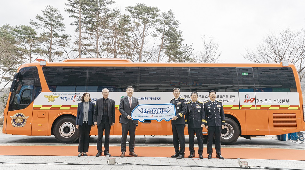 한국수력원자력(사장 황주호)과 밀알복지재단(상임대표 정형석)은 14일 경주 본사에서 소방관들의 쉼터가 될 차량인 ‘안심히어로 소방관 회복차’를 경북소방본부 119산불특수대응단에 전달했습니다.