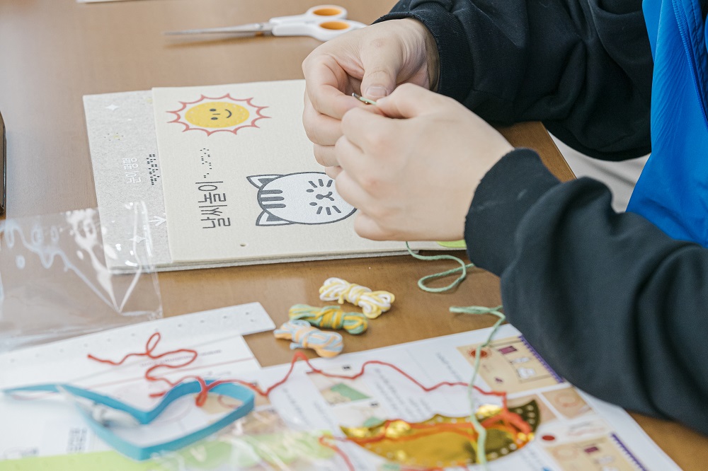 이날 ‘WOORI 가족 봉사단’의 첫 번째 사회 공헌 활동은 ‘시각장애 어린이용 점자 촉각 교구재’ 만들기였습니다. 100여 명의 우리은행 직원과 가족들이 한 땀 한 땀 손수 바느질을 하면서 만든 점자 촉각 교구 재는 맹학교에 보내져 시각장애 어린이의 인지능력 향상과 점자 교육에 사용될 예정입니다.