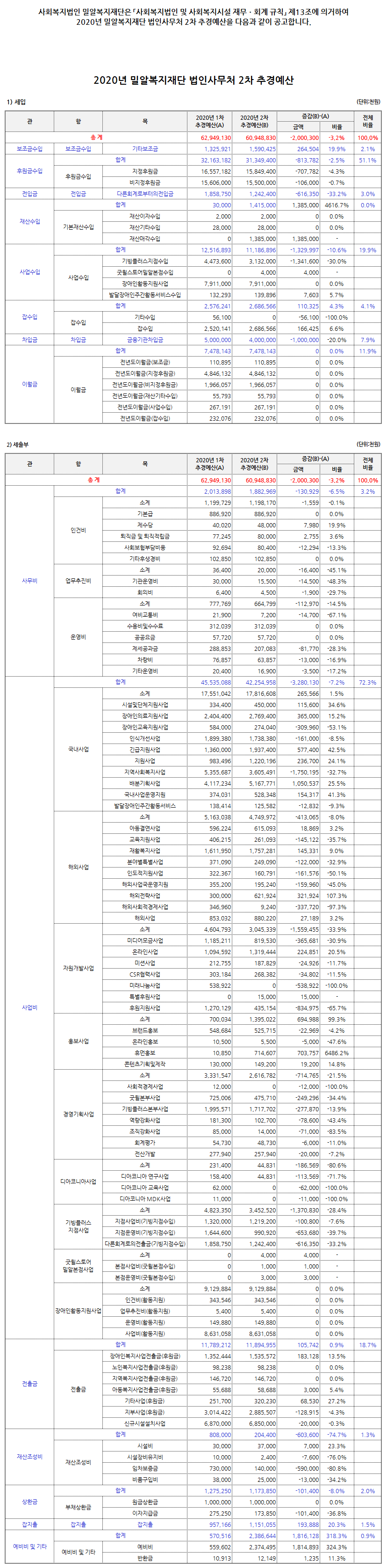 기부금영수증 등 후원내역 관리를 위해서 계좌입금 후 연락부탁드립니다.