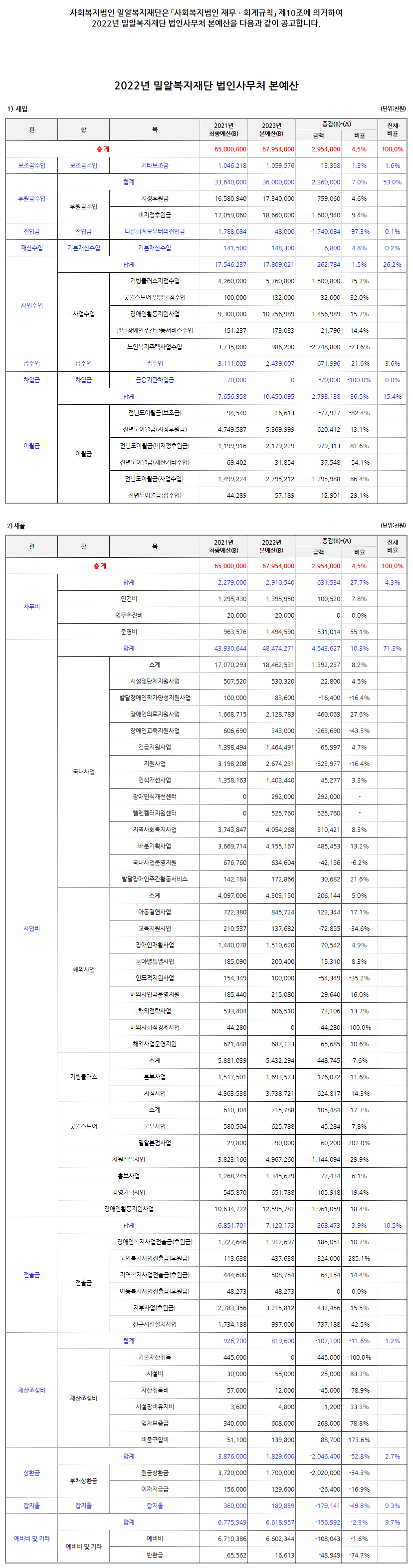 예금주 : 사회복지법인 밀알복지재단