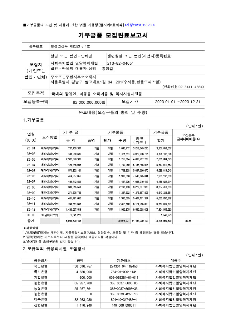 2023년도 기부금품 모집완료 보고
