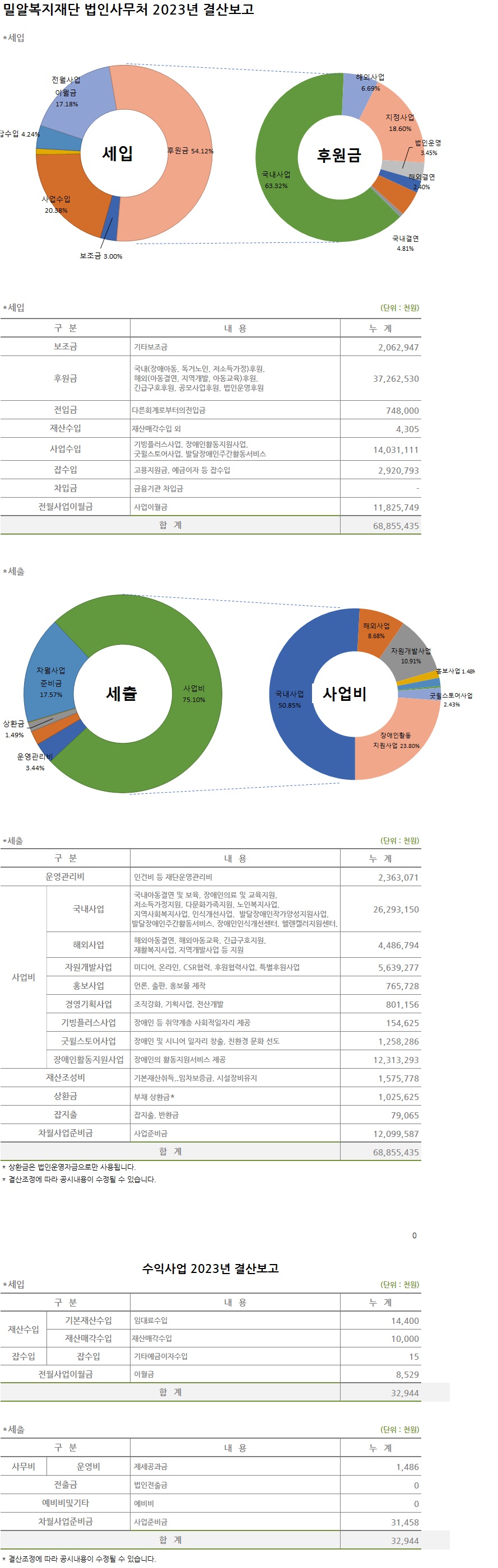 예금주 : 사회복지법인 밀알복지재단