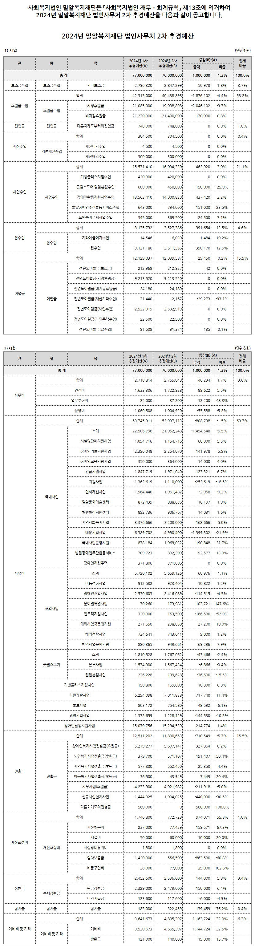 예금주 : 사회복지법인 밀알복지재단