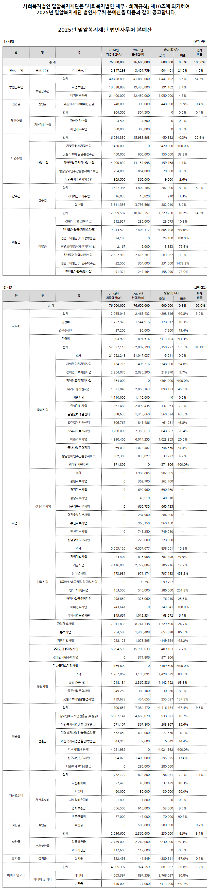 예금주 : 사회복지법인 밀알복지재단