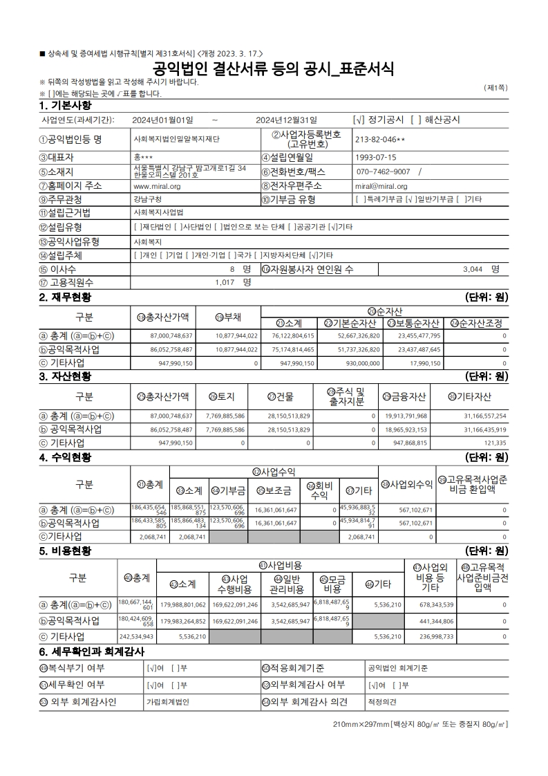 2024년도 공익법인 결산서류를 국세청 인터넷 홈페이지에 공시하였음을 안내드립니다.