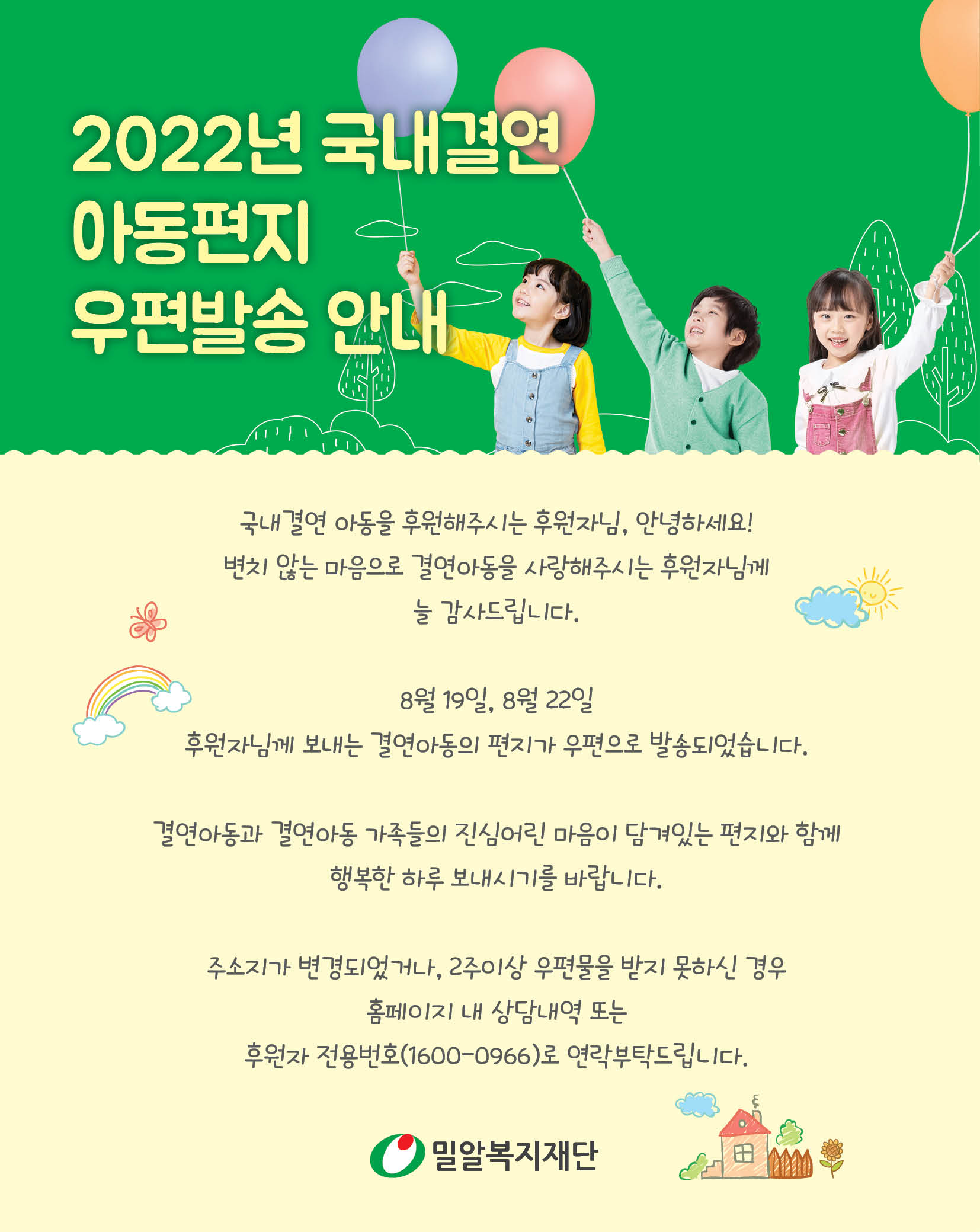 2022 국내결연 아동편지 우편 발송 안내