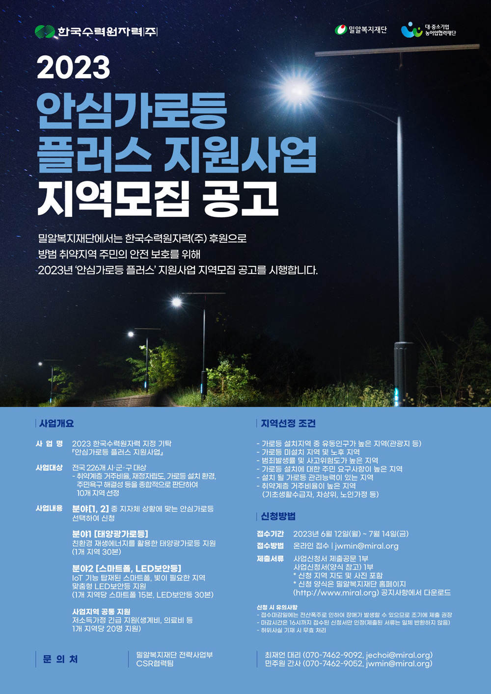 '안심가로등 플러스 지원사업' 지역모집 공고