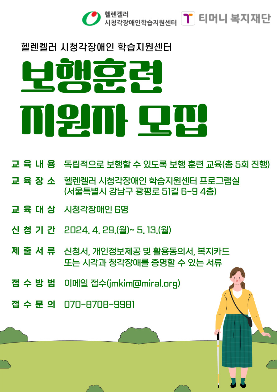 ![[포스터] 헬렌켈러 시청각장애인 학습지원센터가 보행훈련을 받을 시청각장애인을 모집한다..jpg](/upload/editor/202404301559222070076542.jpg)