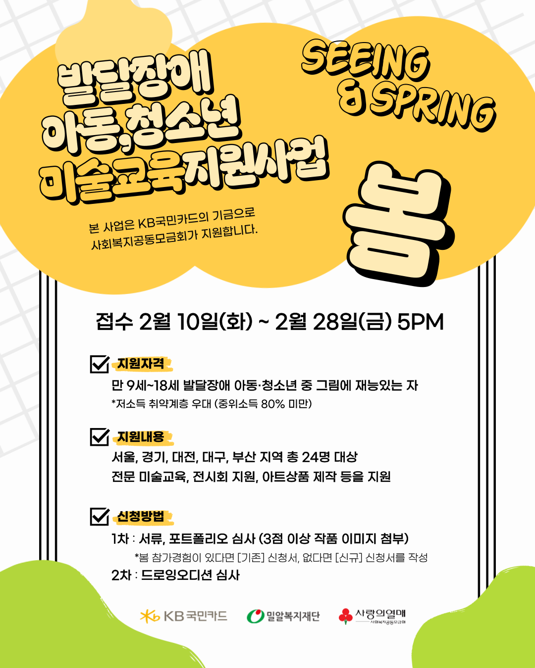 - 서류접수: 2월 10일(월) ~ 2월 28일(금) 17:00까지