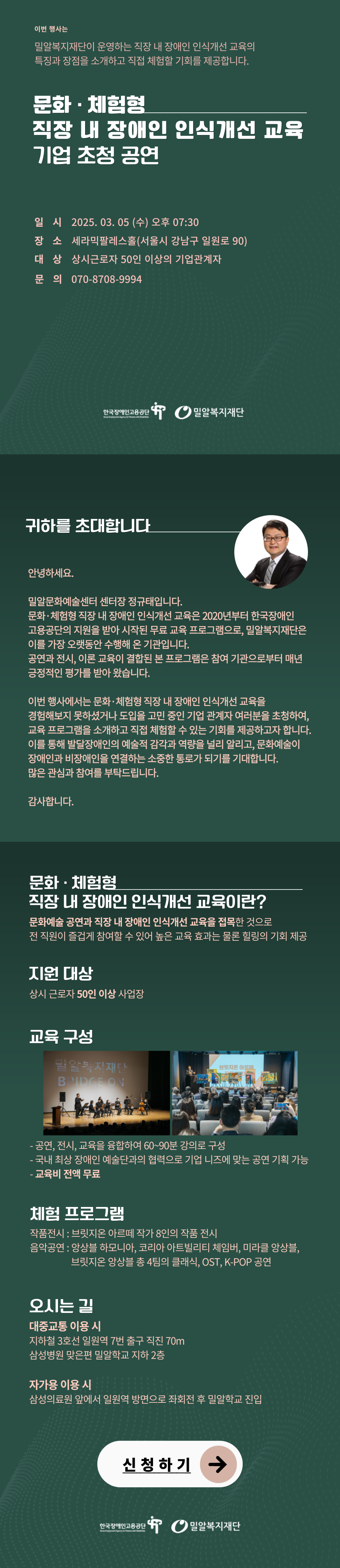 밀알복지재단이 운영하는 직장 내 장애인 인식개선 교육의