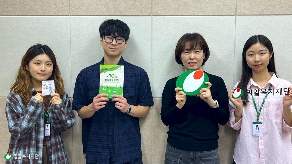 안녕하세요. 저는 밀알복지재단 커뮤니케이션실 유종화 간사입니다. 저는 스토리텔링 공모전 관련 업무를 하고 있습니다. 수상작을 바탕으로 한 밀알툰 제작이 저의 대표적인 업무이고, 또 수상작을 연예인분들이나 성우분들이 읽어주시는 오디오북으로도 제작하고 있습니다. 그리고 SNS도 담당하고 있어서 지금 진행하는 이 ‘밀터뷰’를 업로드하는 것도 저의 업무가 될 것 같습니다.