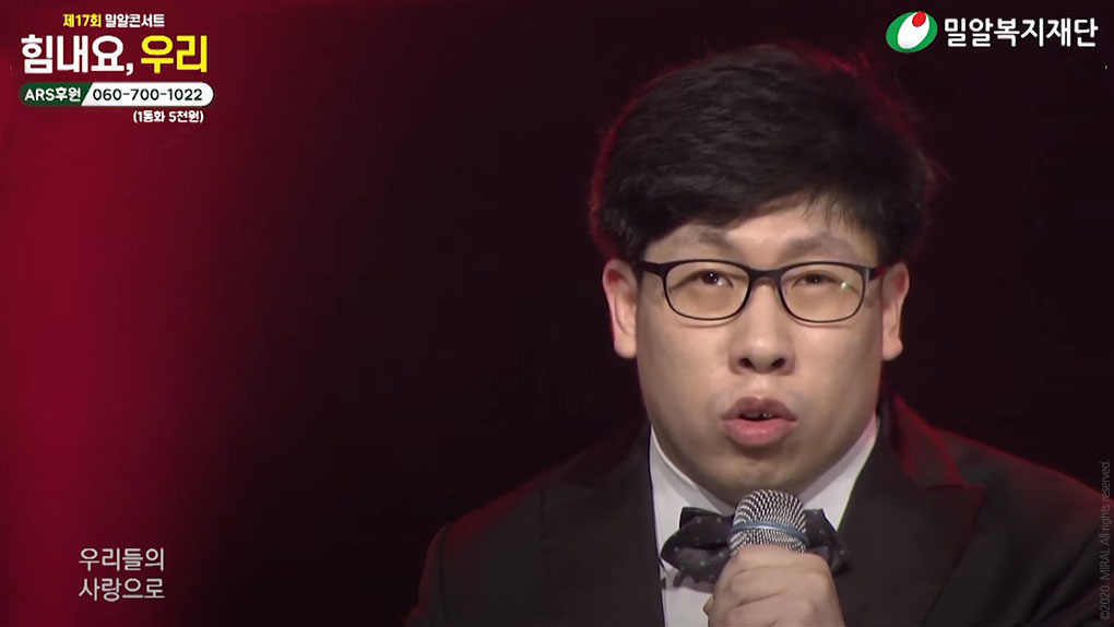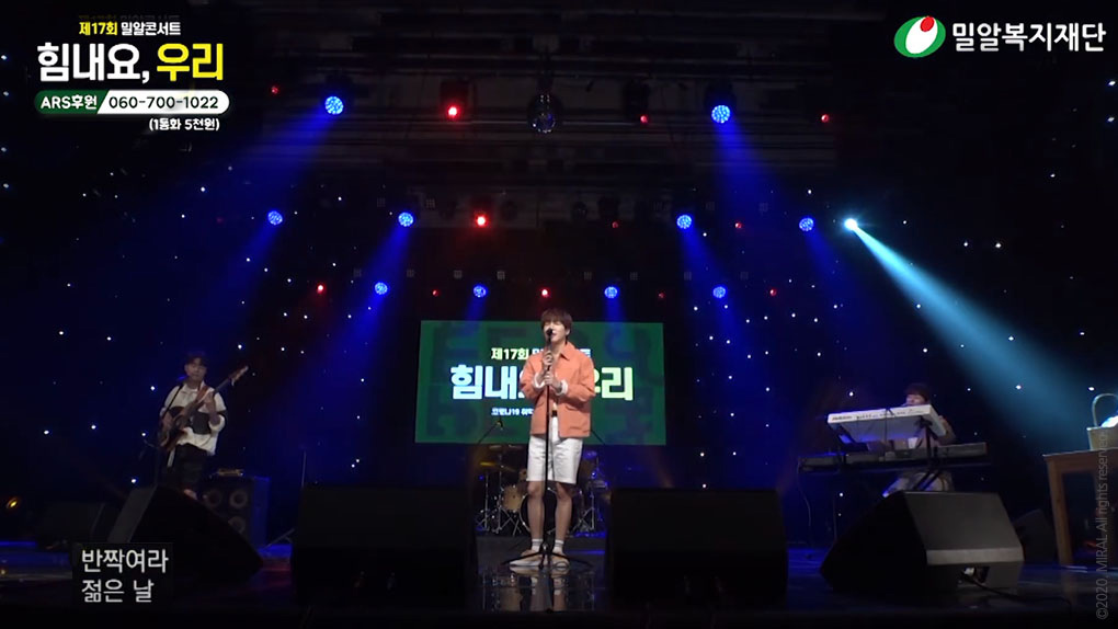 제17회 밀알콘서트 후기영상제17회 밀알콘서트는 코로나19의 여파로 고용위기를 겪고 있는 장애인 및 취약계층을 응원하기 위해 ‘힘내요 우리!’라는 주제로 밀알복지재단 유튜브 채널에서 6월 25일 8시에 라이브 방송으로 진행되었습니다. 밀알복지재단이 처음으로 진행하는 비대면 콘서트임에도 불구하고 70분 동안 4500여 명(순 시청자 수)이 밀알콘서트를 시청하며 장애인과 비장애인의 화합에 함께 해주셨습니다. 제17회 밀알콘서트로 모금된 총 4억 원은 장애인 및 취약계층의 고용을 위해 투명하게 사용될 예정입니다.