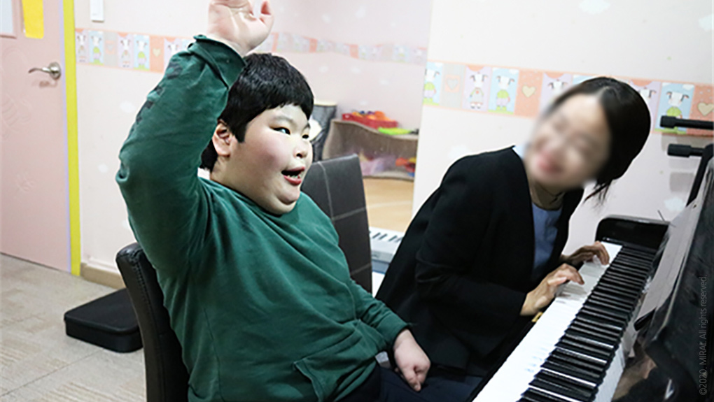 음악치료를 받으며 즐거워하는 영현이(가명)의 모습