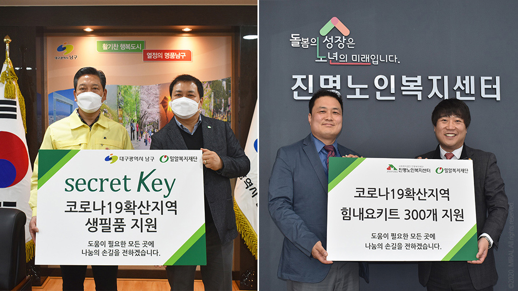 올해 2월 말 코로나가 대구·경북에서 확산되면서, 대구·경북지부는 캠페인을 비롯한 외부행사를 모두 중단할 수밖에 없었습니다. 하지만 밀알복지재단이 취약계층을 대상으로 3만여 개의 ‘힘내요 키트’를 전달하는 ‘긴급구호사업’을 진행하면서, 대구·경북지부는 후원금을 모금하고 장애아동가정에 키트를 전달하는 등 중추적인 역할을 맡을 수 있었습니다.