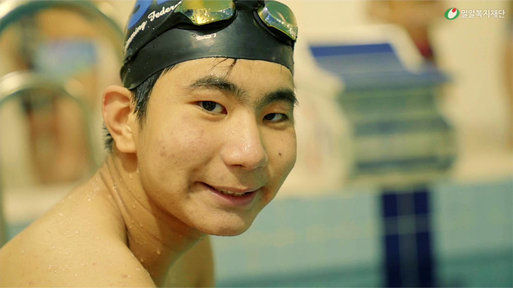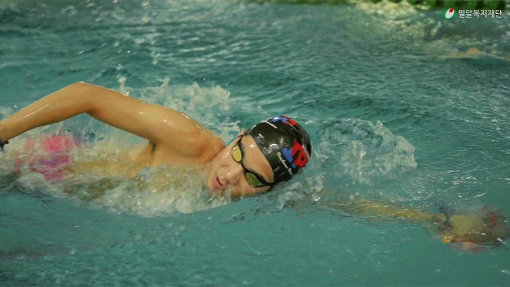밀알복지재단의 점프 사업으로 선정된 전효진 선수(남, 17세)는 한국 장애인 남자 수영 선수로 활동하고 있습니다. 전효진 선수는 태어날 때부터 난산으로 뇌 손상을 입고, 호흡조차 없어 생사의 고비를 어렵게 넘겼지만 결국 뇌병변·지적장애인이 되었습니다. 장애로 인한 굳어진 몸을 펴는 치료가 시급해 복지관에서 운영하는 장애아동 수영 프로그램을 신청했습니다. 치료를 위해 시작한 수영은 전효진 선수의 전부가 되었고, 우연한 기회로 출전한 동네의 작은 대회에서 금메달을 차지했습니다. 재능을 확인한 전효진 선수는 본격적으로 수영 선수를 꿈꾸며 훈련 생활을 시작했습니다.