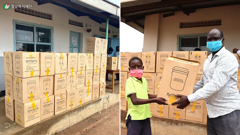 밀알복지재단 우간다 사업장은 식수와 각종 위생 문제로 위험에 노출된 아무루 지역 주민들을 위해 2021년 총 2회에 걸쳐 아동, 장애인, 노인, 임산부 등 취약한 가족구성원이 있는 빈곤층 80가정을 대상으로 오염된 물을 깨끗하게 정수 할 수 있는 ‘가정용 정수 필터’를 지원했습니다. 각 가정에 전달된 ‘가정용 정수 필터’는 오염된 물속의 박테리아를 99.9% 정수 가능하여 식수위생환경 개선 및 감염병 예방에 힘을 쏟았습니다.