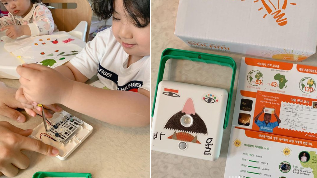 태양광랜턴을 조립하고 있는 바울이(출처: @bana_mom 인스타그램)
