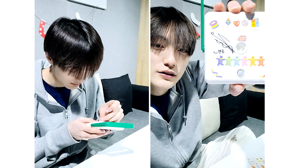 미래소년 유빈은 가장 먼저 브이라이브를 통해 팬들에게 실시간으로 태양광랜턴을 조립하는 모습을 보여 주었습니다. 태양광랜턴 조립 후 여러 가지 스티커도 붙이고, 자신의 싸인을 남기며 뜻깊은 시간을 가졌습니다. 유빈은 “(아이들이 완성된 랜턴을) 들고 다니면서 불을 켤 수 있고, 아주 유용하게 사용할 것 같다.”라며 뿌듯한 소감을 전달했습니다.