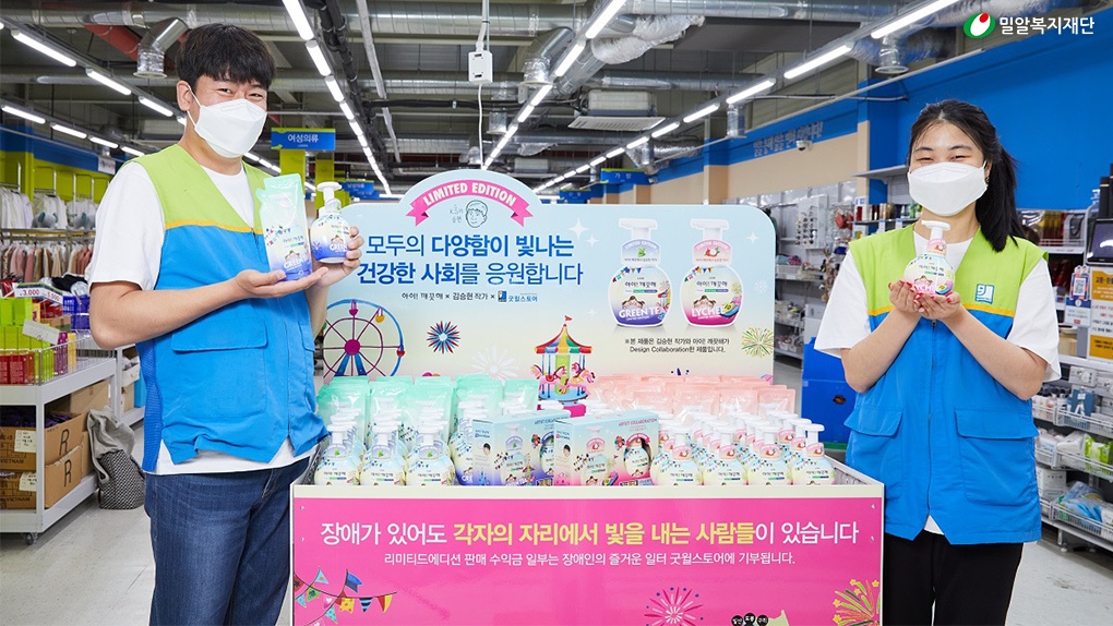 밀알복지재단 굿윌스토어와 라이온코리아가 장애인 자립을 응원하는 ‘아이! 깨끗해 리미티드 에디션 시즌3’를 출시했습니다. 특히 이번 ‘아이! 깨끗해 리미티드 에디션’의 패키지는 밀알복지재단의 발달장애인 김승현 작가가 직접 그린 그림으로 디자인 되어 더욱 의미가 깊었습니다.