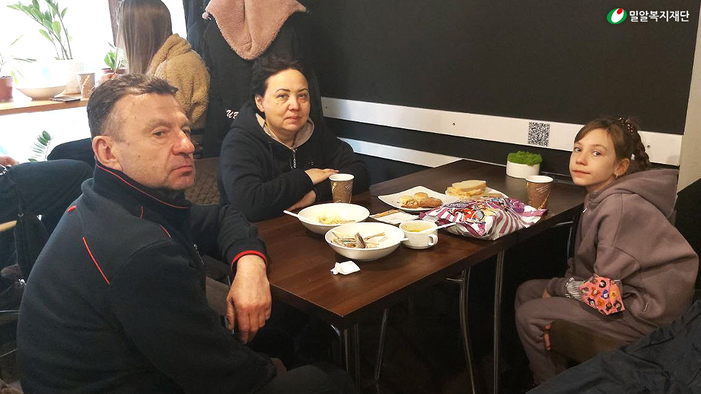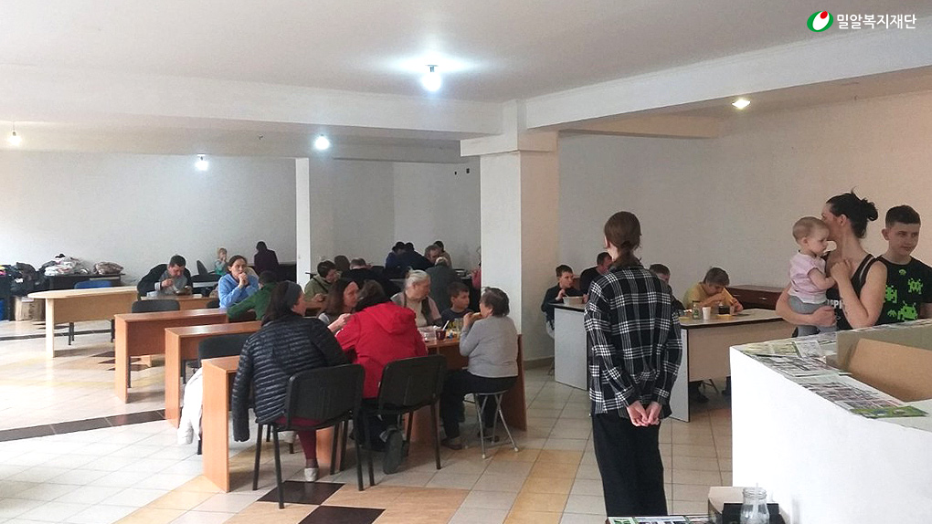 밀알복지재단은 우크라이나 피난민들이 밀집되어 있는 리비우 시에서 밀알복지재단이 운영하고 있는 한국음식점포(점포명: K-Food)를 통해 피난민들을 대상으로 긴급식량을 지원하고 있습니다. K-Food는 밀알복지재단이 2017년부터 장애인들의 재활을 위해 운영하던 식당으로, 전쟁 직후 이곳을 피난민 대상 식량지원처로 변경하여 긴급식량을 지원하고 있습니다. 이곳에서 매일 아동부터 노인까지 약 100명에게 따뜻한 식사를 제공하고 있으며, 잠시나마 피난길의 고단함을 덜어낼 수 있는 위로의 공간으로도 활용되고 있습니다.
