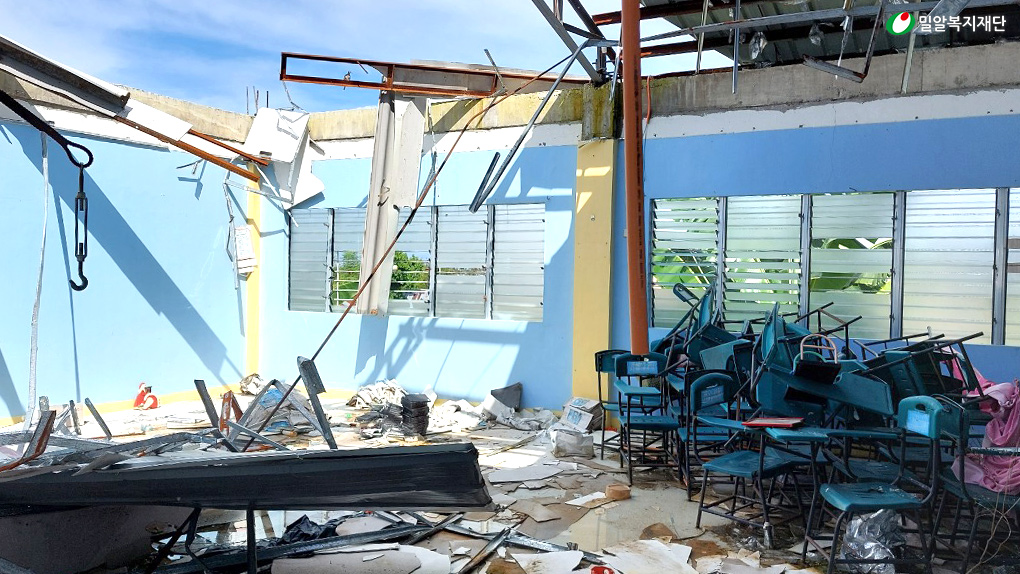 이바바오 초등학교는 태풍으로 인해 지붕과 천장이 무너져 내렸고, 교실 내 각종 비품(칠판, 책걸상 등)이 날아가는 등의 큰 피해를 입었습니다. 학교는 아이들과 교사의 생존을 위해 운영을 중단할 수밖에 없었고, 태풍이 지나간 이후 아이들의 지속적인 교육을 위해 학교 재건이 필요했지만 재정 부족으로 진행할 수 없었습니다.