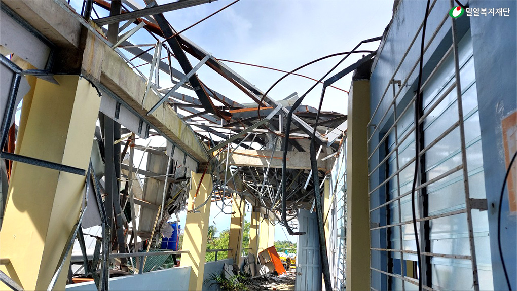지난 2021년 12월, 필리핀 세부 지역을 직격으로 강타한 초대형 태풍 ‘라이’로 인해 수많은 사망·실종자가 발생했습니다. 이러한 여파로 교통, 통신, 전기, 사회기반시설 대부분이 파괴되었고, 지역 주민들의 주거지 또한 부서지거나 무너졌습니다. 그 중 밀알복지재단 필리핀 사업장에서 운영하는 이바바오 초등학교도 포함됐습니다. 무너진 학교로 인해 아이들은 갈 곳을 잃었고, 교육 또한 중단되었습니다. 밀알복지재단은 아이들의 지속적인 학업 유지를 위해서는 생계 지원과 함께 학교를 복구하는 것이 가장 시급하다고 판단하여 이바바오 초등학교 재건을 진행했습니다.