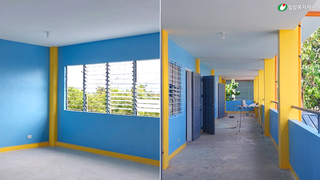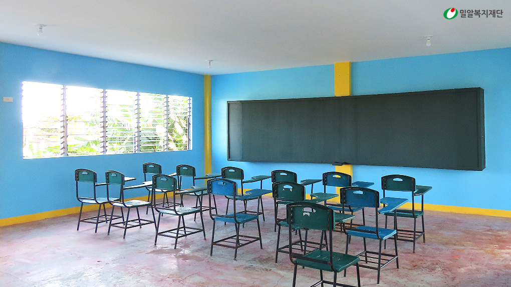 그리고 아이들이 공부할 수 있는 교실 내 책걸상, 칠판도 새롭게 탈바꿈했습니다. 밀알복지재단 필리핀 직원 및 학교 관계자들은 재건된 교실을 보고 아이들이 다시 교실에서 열심히 학습하는 모습을 꿈꾸며 큰 보람을 느꼈습니다.