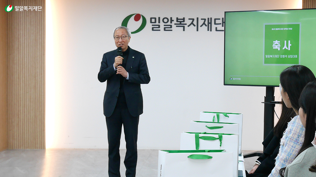 먼저 밀알복지재단 정형석 상임대표의 축사를 시작으로, 기자단으로서의 시작을 알리는 임명장 수여식을 진행했습니다. 임명장을 전달 받은 기자단은 밀알복지재단과 나눔문화를 전파할 것을 다시 한번 다짐하는 듯 밝은 모습들을 보여주었습니다.