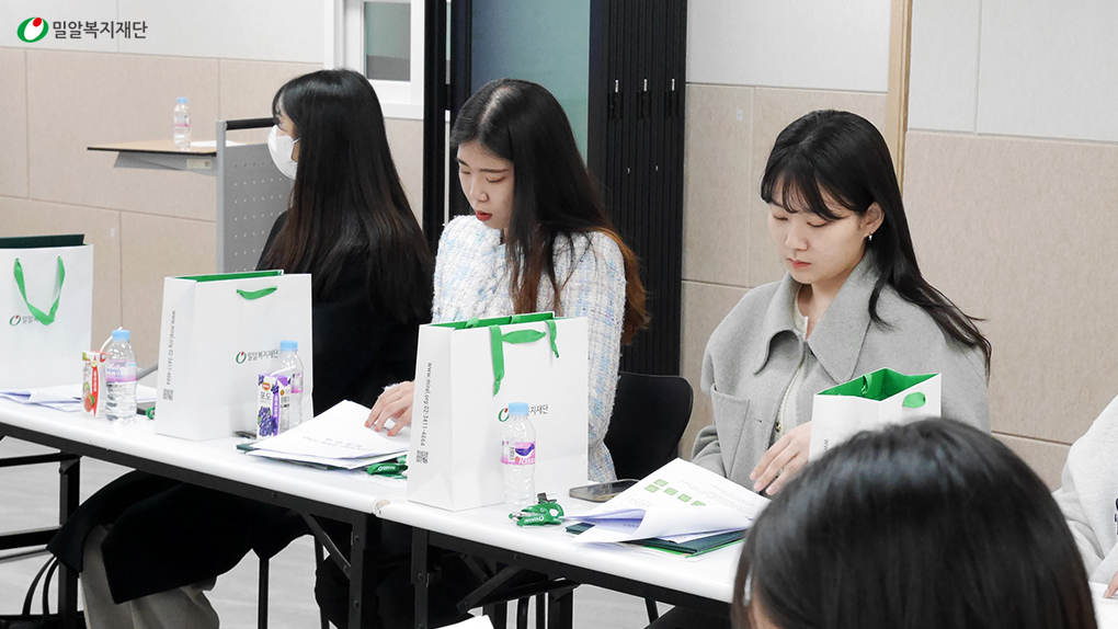 발대식 마지막 시간은 활동 계획, 혜택 등을 담은 활동 안내와 더불어 대학생 기자단이 첫 번째로 수행하게 될 미션 공개가 이뤄졌습니다. 기자단의 첫 활동은 ‘밀알복지재단 사업장 취재 및 콘텐츠 제작’인데요. 활동을 위해 3인 1조로 한 팀이 되어 어떤 사업장을 취재할지 의논하는 시간을 가졌습니다. 향후 대학생 기자단은 각 미션마다 재단의 사업 취재, 홍보캠페인 기획, 봉사활동 등을 수행하게 됩니다. 또 매 월 진행되는 정기모임을 통해 서로의 취재 내용과 후기를 공유하고 역량 강화를 위한 다양한 교육도 받을 예정입니다.