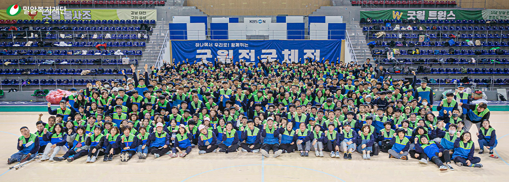 밀알복지재단 굿윌스토어는 4월 18일 용인실내체육관에서 전 직원이 함께하는 첫 체육대회, ‘굿윌전국체전’을 개최했습니다. 굿윌전국체전은 전국 18개 지점에서 근무하고 있는 480여 명의 장애인, 비장애인 직원들의 화합과 소통을 위한 장으로 마련되었습니다.