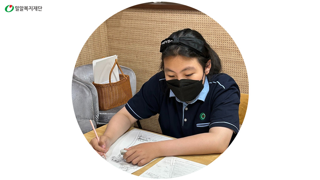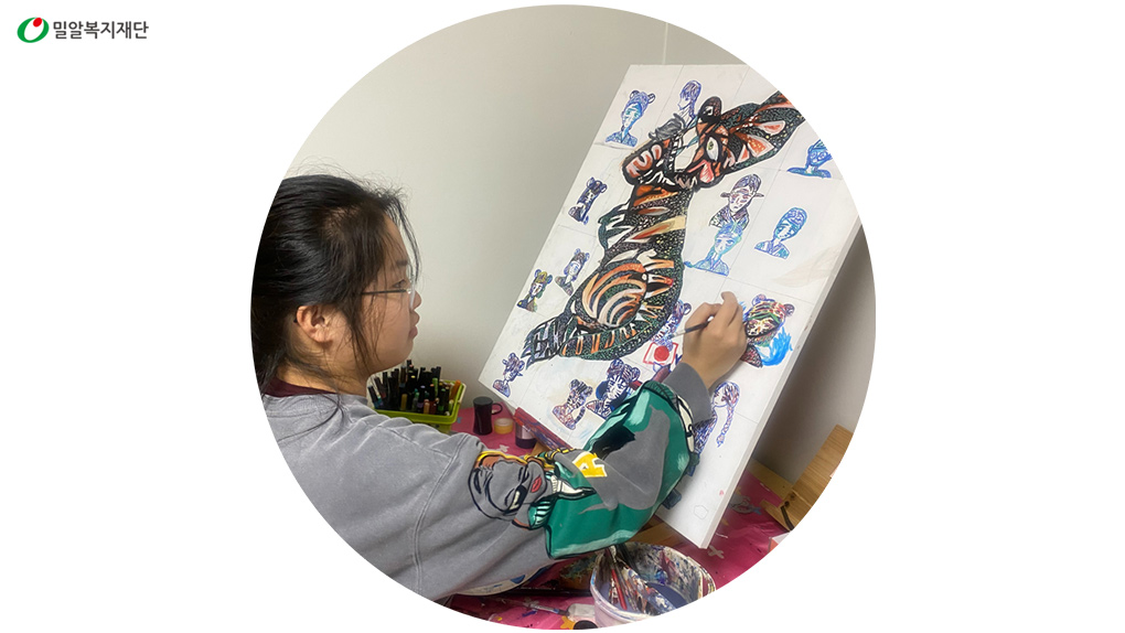 저는 귀가 예민하고 배우는 것이 느리고 학습이 어려울 때도 많지만, 음악으로 느끼는 예술적 감동을 그림으로 표현해내는 멋진 예술가가 되고 싶어요.