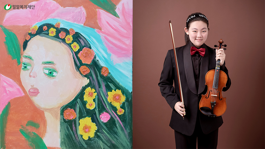 안녕하세요. 저는 대구 동도중학교 1학년 김민서입니다. 저는 음악과 미술을 좋아합니다. 지금 대구 교육청 소속 특수오케스트라 '위드 오케스트라'의 단원으로 바이올린 파트에서 연주하고 있습니다.