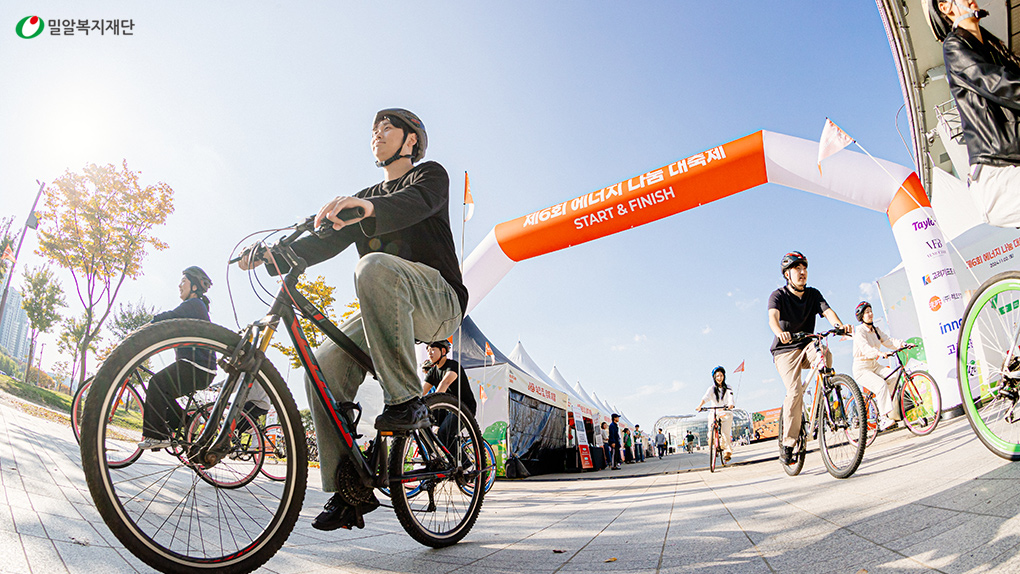 제6회 에너지 나눔 대축제는 해외 에너지 빈곤지역에 태양광랜턴을 전달하기 위해 개최되었습니다. 이날 오후 1시부터 7시까지 진행된 축제 현장에서는 남녀노소 누구나 즐겁게 친환경 에너지 나눔을 체험할 수 있는 다채로운 프로그램이 펼쳐졌습니다. 가장 눈길을 끈 것은 메인 프로그램인 ‘5km 에너지 라이딩 챌린지’였는데요. 시민들은 축제 현장에 마련된 무료 자전거를 이용해 반포 한강공원 행사장부터 잠원 한강공원까지 왕복 5km 구간을 라이딩하며 가을의 한강을 만끽하는 한편, 친환경 에너지로 나눔을 실천하자는 취지에 공감하는 시간을 가졌습니다.