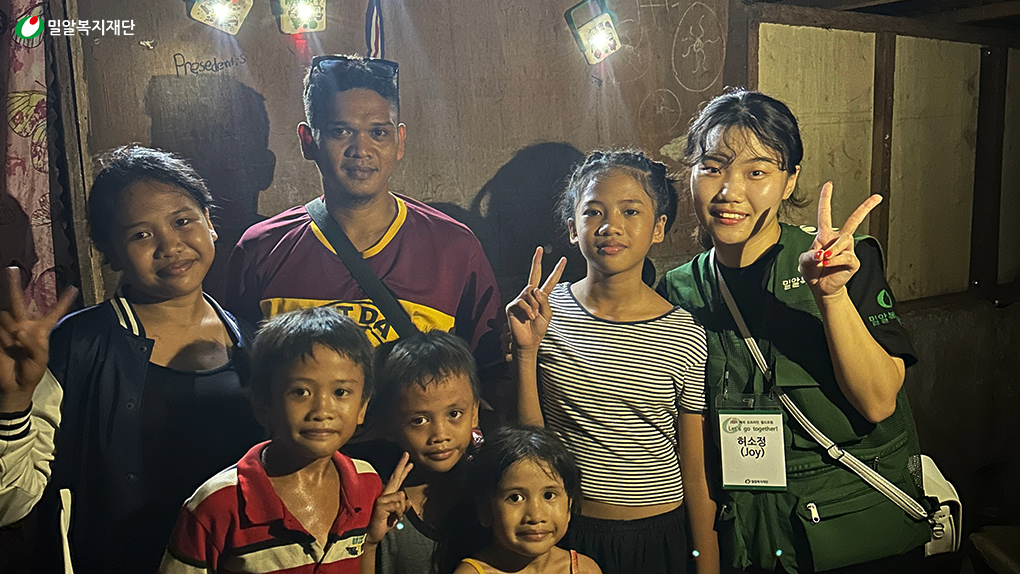 1:1로 결연 아동을 돕는 정기후원자들이 방문한 여정인 만큼, 감동적인 이야기도 만들어졌습니다. 허소정 후원자는 필리핀 결연 아동 1명(케이사 메이 카술)을 후원하고 있는데요. 필드트립 홍보 글에서 ‘필리핀’이라는 단어를 보자마자 꼭 가야겠다는 마음으로 신청했습니다. 다만 가정방문 순서가 편성된 것을 보고 되도록 결연 아동의 집에 가면 좋겠다고 생각했지만, 이미 섭외한 몇몇 가정에만 방문하는 것이었기 때문에 큰 기대는 하지 못했다고 합니다. 그런데 가정방문 당일, 깜짝 선물처럼 허소정 후원자의 결연아동 집으로 찾아가게 되었습니다. 허소정 후원자는 직접 케이사를 만날 수 있다는 사실에 무척 기뻐했습니다. 또한 현재 전기 없이 지내는 결연 아동 가정에 태양광 랜턴(솔라미)을 전달해줄 수 있었습니다. 후원자는 어둡던 공간에 랜턴을 켠 순간, 아이가 밝게 웃던 그 순간을 평생 잊지 못할 거라고 전했습니다.