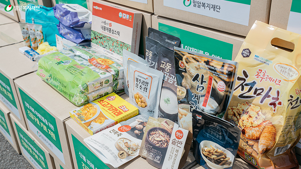 그 결과, 밀알복지재단 홍보대사로 활동하는 배우 진태현-박시은 부부를 비롯해 메트라이프 기업 등 많은 후원자님의 따뜻한 나눔이 모였으며, 이를 바탕으로 경상북도장애인종합복지관과 협력하여 경북 의성군의 피해 가정 100가구에 1차 긴급구호 키트를 전달할 수 있었습니다. 이번 지원을 통해 즉석식품과 반찬 등 식료품을 비롯해 마스크, 물티슈, 치약 칫솔 등의 위생용품과 건강기능식품을 신속하게 제공하였습니다.