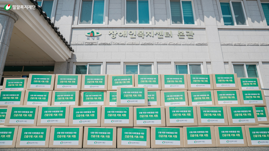 지난 3월 22일, 경북 의성에서 성묘객의 실화로 처음 시작된 대형 산불은 경상 지역 수많은 가정을 잿더미로 만들었습니다. 경북 의성, 안동, 영양, 영덕, 청송을 비롯하여 경남 산청, 하동, 울산 울주까지 넓은 지역에 걸쳐 불길이 번지며 크나큰 피해를 주었습니다. 이에 밀알복지재단은 산불로 삶의 터전을 잃은 주민들을 돕기 위해 3월 31일, 경북 의성군의 피해 가정 100가구에 1차 긴급구호 키트를 전달했습니다.