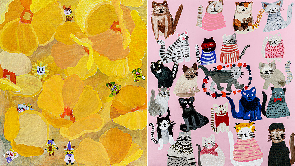 ● 김지우 작가, 해바라기 캐릭터(72.7x60.6cm, 아크릴, 2024)