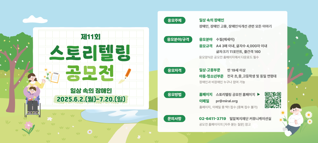 밀알복지재단과 한국장애인고용공단이 함께하는 스토리텔링 공모전은 ‘일상 속의 장애인’을 주제로 장애인과 그 가족들의 감동 실화를 모집하는 에세이 공모전입니다.