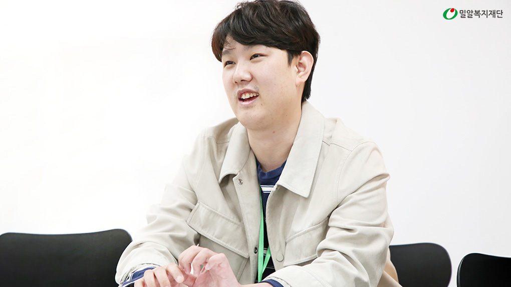 | 저는 작업장에서 일하는 것이 제일 재밌습니다. 왜냐하면 제가 맡은 일, 제가 스스로 할 수 있는 일이 많거든요. 문화생활을 할 때도 내가 해냈다는 걸 느낄 수 있는 활동이 더 재밌습니다. 발달장애인에게도 문화생활에 있어 선택권과 용기를 불어 넣어주는 우리나라가 됐으면 좋겠습니다. |