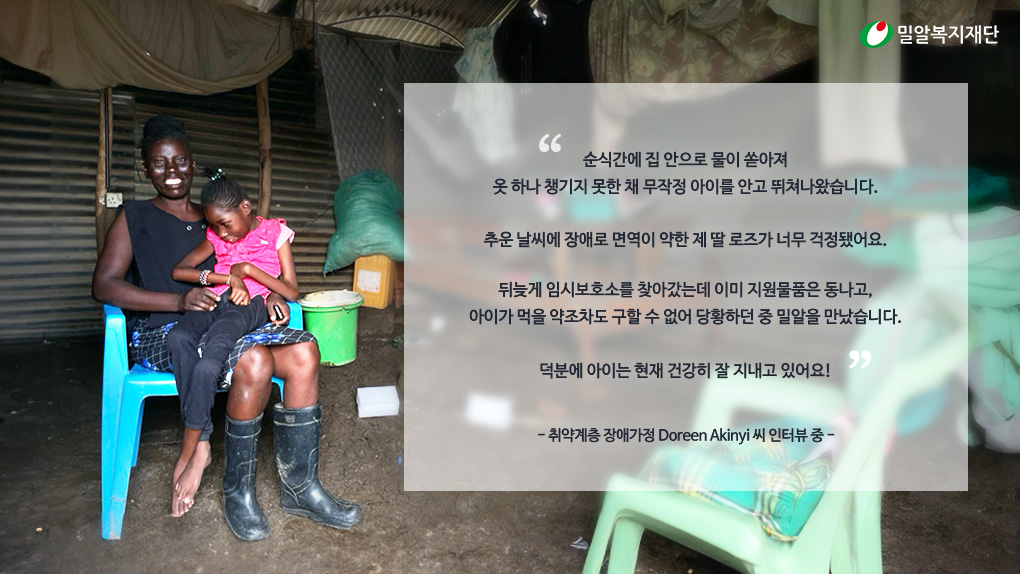 긴급지원을 받은 취약계층 장애가정 (엄마 도린과 딸 로즈)