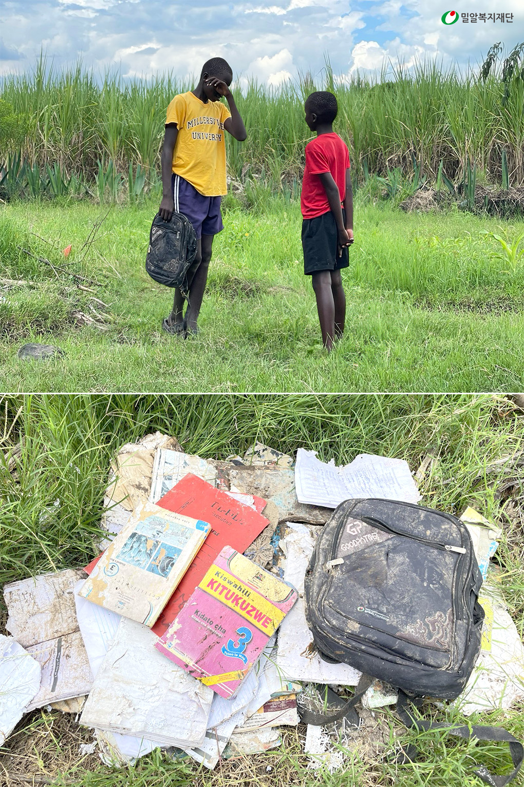 홍수 피해를 입은 케냐 아이들과 아이들의 교과서